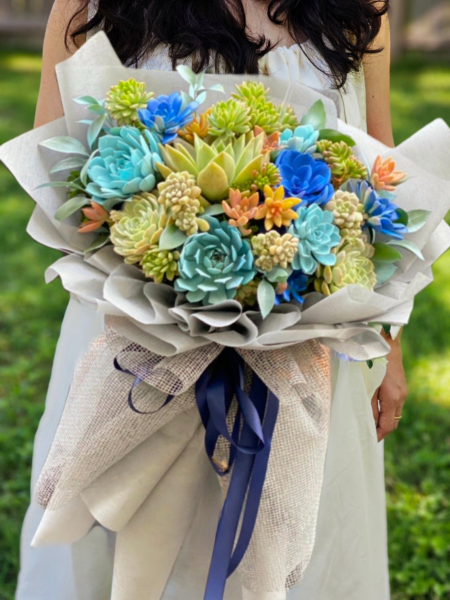 The succulent bouquet symbolizes enduring love and beauty. Succulent arrangements are special...