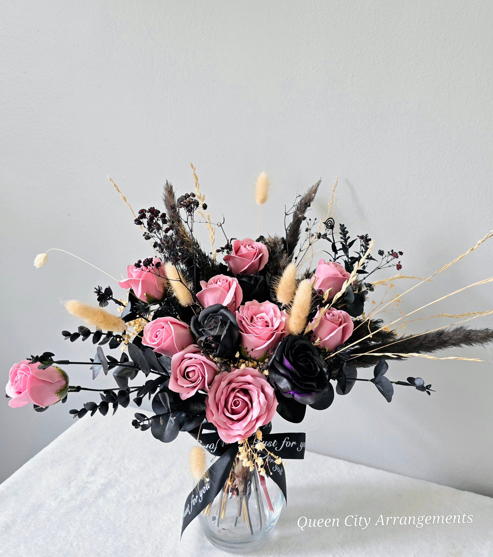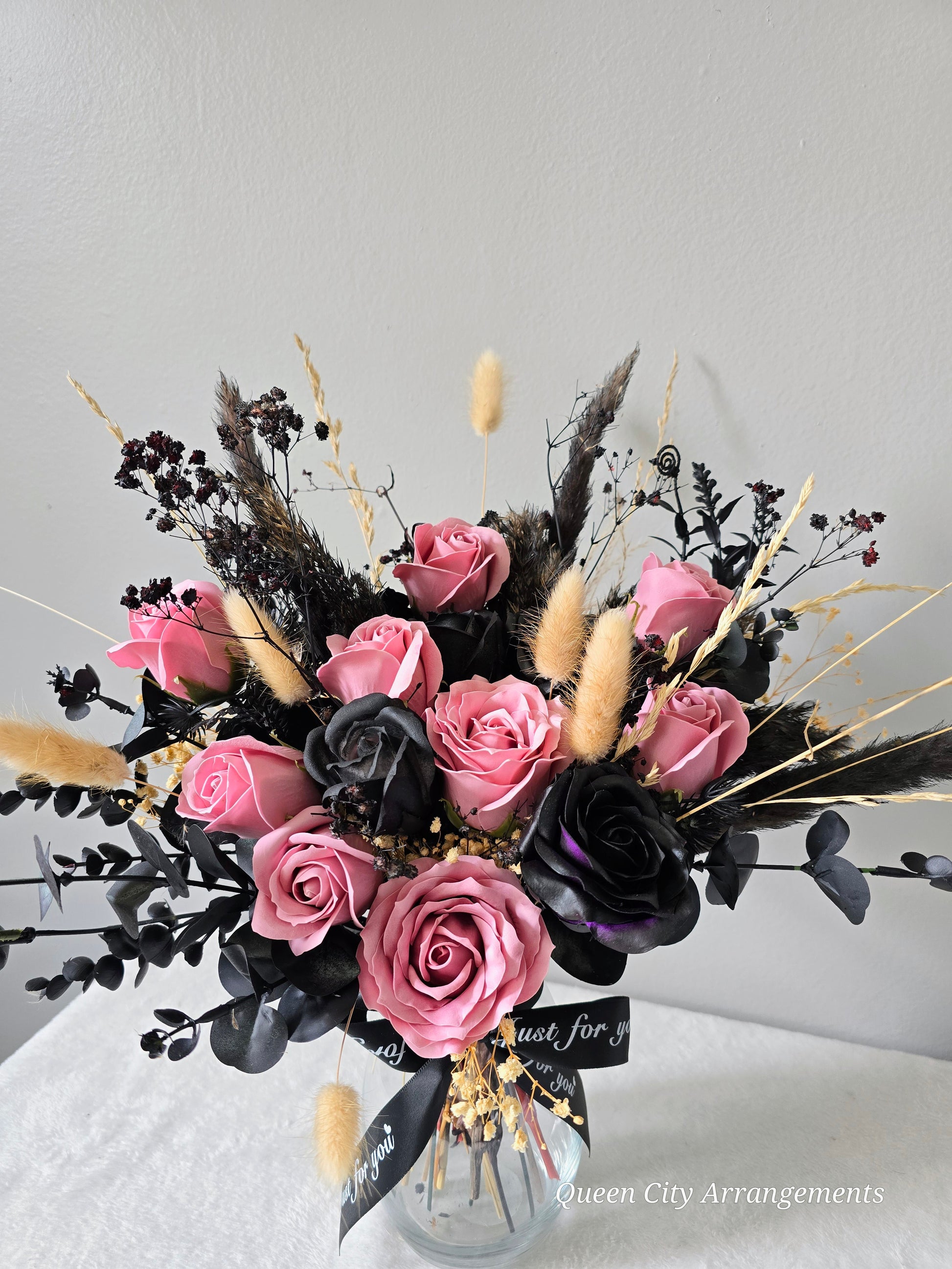 Each meticulously arranged bouquet, velvety black hues of the roses that symbolize mystery and romance, creating a unique and memorable gift.